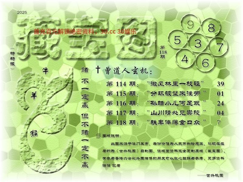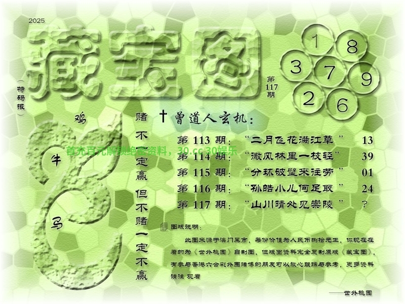 119期藏宝图:【资料正在更新中】 浅解:资料正在更新中 综合生肖:资料正在更新中 |